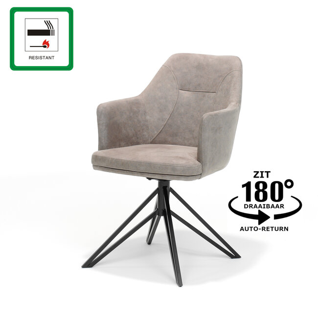 De Calvin eetkamerstoel combineert een robuuste uitstraling met comfortabel zitgemak en praktisch gebruiksgemak. Dankzij het 180 graden draaimechanisme met auto-return functie draai je soepel mee aan tafel en keert de stoel automatisch terug naar de rechte positie wanneer je opstaat. Dit zorgt voor een verzorgde en stijlvolle uitstraling in je eetruimte.