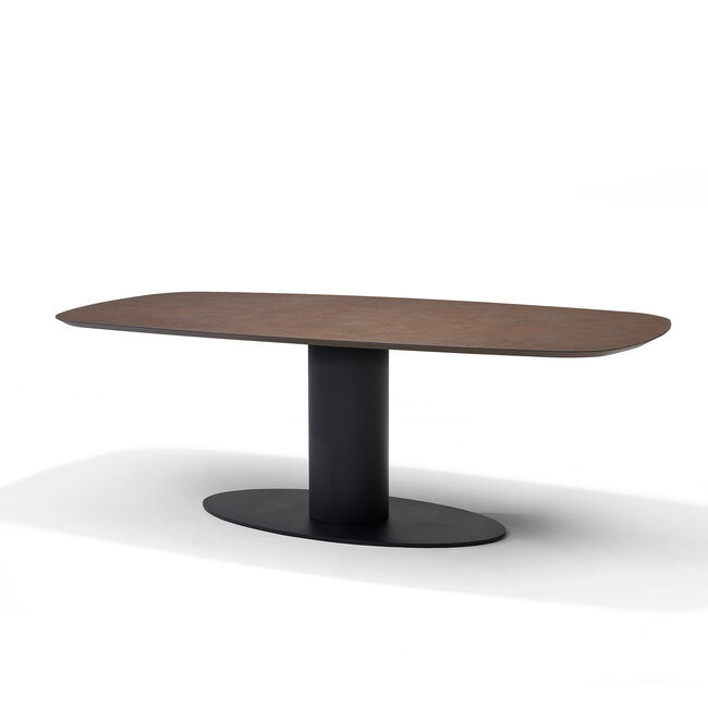 Basic eetkamertafel Deens Ovaal 240X110 HPL1 Ferro Brons+TM03A Kolomvoet onderstel voetplaat Ovaal