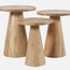 Deze set van drie bijzettafels valt op door het strakke, conische ontwerp en de warme uitstraling van naturel mangohout. De verschillende hoogtes maken de tafels veelzijdig: gebruik ze samen als decoratieve set of afzonderlijk voor praktische toepassingen in je interieur. Het eenvoudige maar stijlvolle design past perfect in zowel moderne als klassieke ruimtes. Een functionele en decoratieve aanvulling op elke woonkamer.