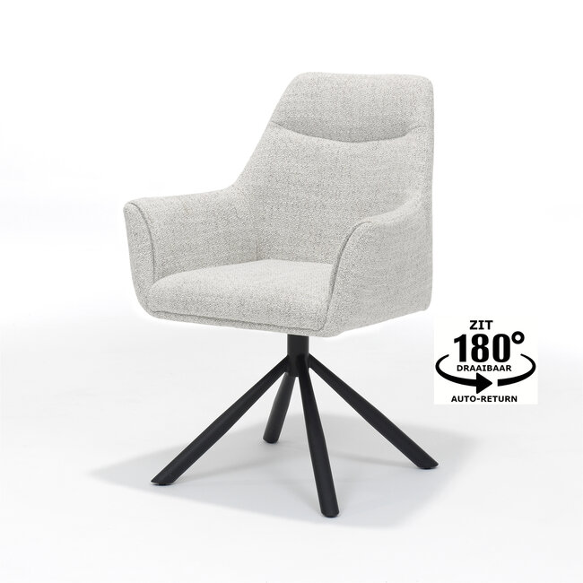 De Boston armstoel is ontworpen voor wie comfort en stijl wil combineren in de eetkamer. Dankzij het 180 graden draaimechanisme met auto-return beweeg je soepel aan tafel en draait de stoel automatisch terug naar de juiste positie wanneer je opstaat. Dit zorgt voor extra gebruiksgemak en een opgeruimde uitstraling.