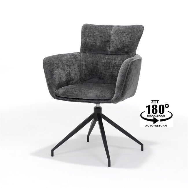 De Evan armstoel combineert modern design met optimaal zitcomfort en praktische functionaliteit. Dankzij het 180 graden draaimechanisme met auto-return beweeg je soepel aan tafel en draait de stoel automatisch terug naar zijn oorspronkelijke positie wanneer je opstaat. Dit zorgt voor een nette en georganiseerde uitstraling in de eetkamer.