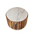 De Salontafel Dex is een verfijnde blikvanger die natuurlijke elegantie combineert met een vleugje luxe. Het tafelblad is vervaardigd uit hoogwaardig Baswada-marmer, elk stuk uniek door zijn subtiele aders en natuurlijke kleurschakeringen. Het stevige onderstel met verticale houten spijlen is uitgevoerd in natuurlijk hout, wat zorgt voor een warme en organische uitstraling.