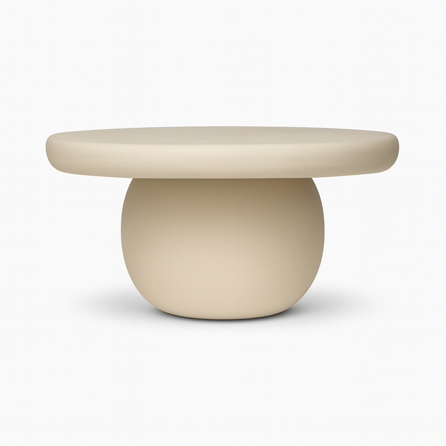 De ronde vorm geeft de tafel een zachte en harmonieuze uitstraling, terwijl het bolvormige onderstel een opvallend designaccent vormt dat kracht en balans uitstraalt. Dankzij het compacte formaat past salontafel Max perfect in zowel grote als kleine woonruimtes