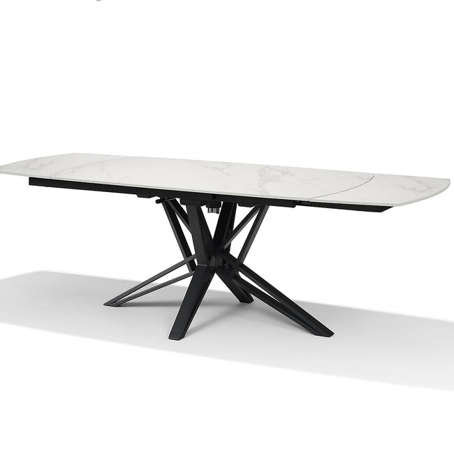 De VEGAS uitschuifbare eettafel in wit marmerlook uitvoering combineert een luxe uitstraling met maximale flexibiliteit. Dankzij het slimme draaibare uitschuifmechanisme vergroot je de tafel eenvoudig van 160 cm naar maar liefst 240 cm. Hierdoor creëer je snel extra zitplaatsen voor diners, feestjes of gezellige avonden met familie en vrienden.