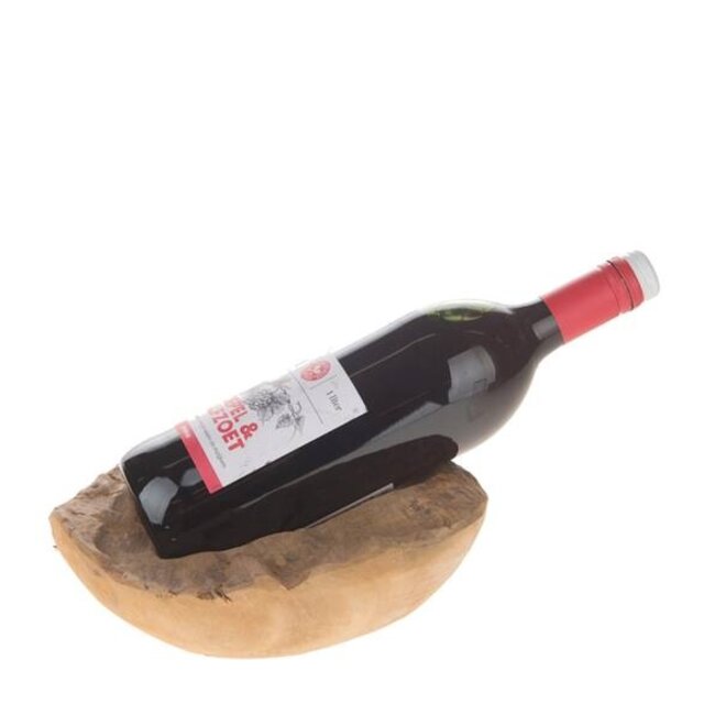 Deze stijlvolle wijnhouder van massief teak hout is een echte blikvanger voor iedere wijnliefhebber. Met ruimte voor één fles combineert hij functionaliteit met een warme, natuurlijke uitstraling. Het robuuste hout en de unieke houtnerf geven elke houder een eigen karakter.